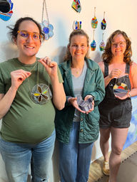 The pieces of glass will be prepared for you (precut and ground and even foiled depending on your time constraint). The group will select their pieces of glass to make their suncatcher (up to 5" in size) and solder them together!